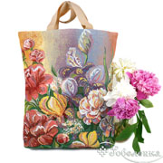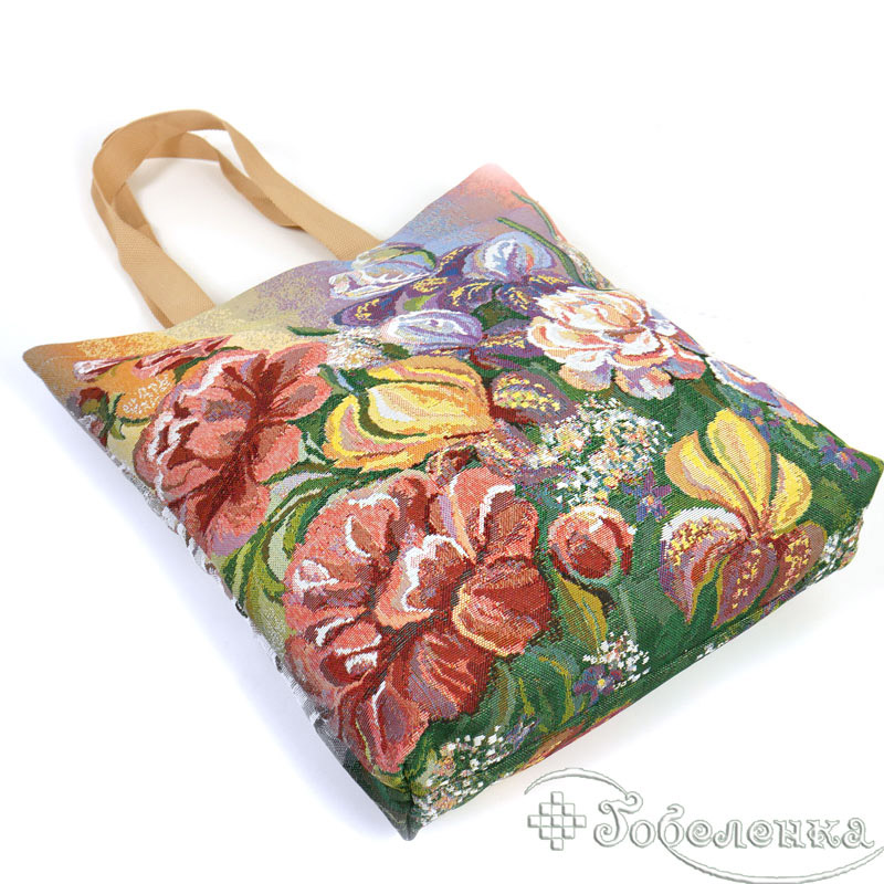 Разноцветная сумка из гобелена с большими цветами - легкий незаменимый летний аксессуар. Благодаря мягким переходам от нежножелтого до фиолетовых оттенков сумка с пионами подойдет к любому созданному Вами облику, привнесет в него романтичности, нежности и неповторимости пионов. Сумка Пионы. Букет многофункциональна, может служить и основной сумкой, благодаря своей вместительности, и хозяйственной - ее легко можно сложить и хранить в повседневной сумке.