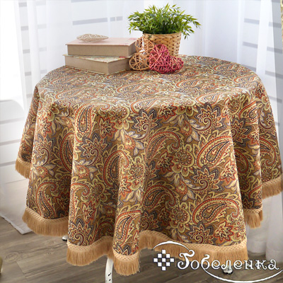 Эта бежевая круглая скатерть в восточном стиле станет изысканным украшением вашего стола и всего интерьера. Роскошный орнамент, словно привезенный с Шелкового пути, добавит нотку экзотики в ваш дом. Скатерть гобеленовая не только красива, но и практична. Нейтральный бежевый цвет легко впишется в любой интерьер, а качественный гобелен прослужит долго. Создайте уютную атмосферу для семейных обедов или удивите гостей на званом ужине.