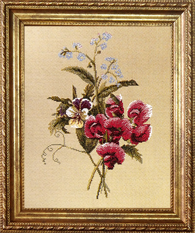 Багет золотисто-матового цвета идеально гармонирует с сюжетом картины, подчеркивая ее природность и естественность, и благодаря емуцветы как бы светятся изнутри. Прекрасный подарок на любой праздник или юбилей, тем более, что у картины есть пара - "Бутоньерка Марго". Вместе они составят великолепный и трогательный ансамбль, который украсит интерьер любого помещения и создаст настроение радости