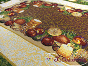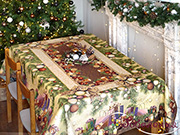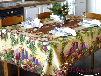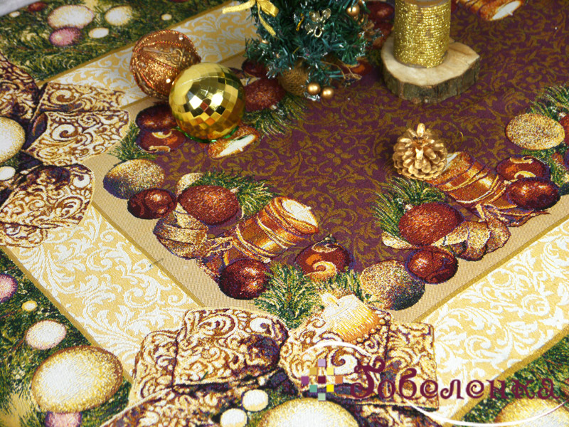 Скатерть новогодняя – это праздничная атмосфера уюта, подарков и веселья. В новогодние праздники, когда мы зажигаем свечи и новогодние гирлянды, скатерть будет поблескивать золотым сиянием – в ткань вплетены тонкие нити люрекса, которые добавляют ей благородный блеск.
