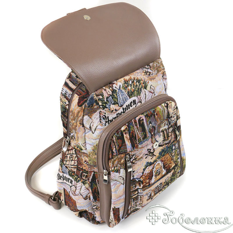 Отличный городской, вместительный и практичный рюкзак с изображением города Антверпен, расположенного на севере Фландрии. Рюкзак выполнен из красивой изысканной гобеленовой ткани. Современная фурнитура. Эко-кожа в качестве акцентов. Продуманный дизайн накладных карманов, регулируемые ручки, вместительный, но аккуратный, позволит вам захватить все, что необходимо, чтобы чувствовать себя великолепно. Цветовая гамма рюкзака будет отлично сочетаться как с джинсами и спортивным стилем, так и с романтичными платьями.