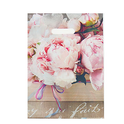 Пакет подарочный полиэтиленовый с нежными пионами.