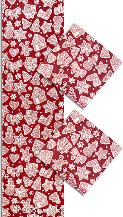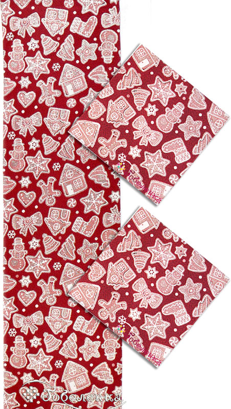 Новогодний набор Пряники (красный) включает салфетку- дорожку на всю длину стола и 2 индивидуальные салфетки.