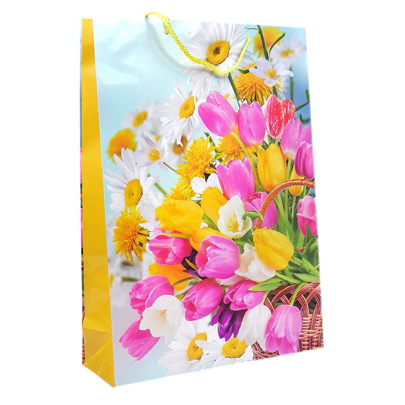 Рисунок- букет из нежно розовых, желтых и белых тюльпанов дополненные ромашками - для самых прекрасных
