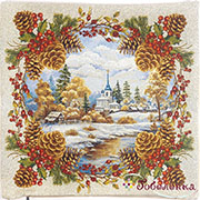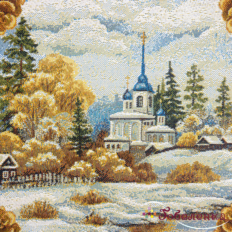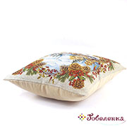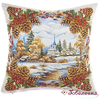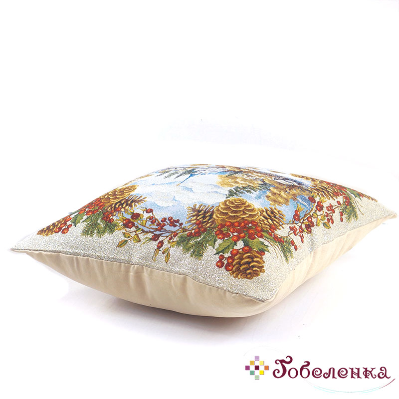 Карасивая новогодняя наволочка из гобелена с новогодним пейзажем. Чехол односторонний с застежкой на молнию.