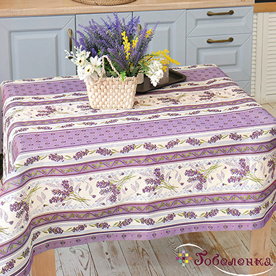 Скатерть гобеленовая в стиле прованс с изображением цветов лаванды 150х150 +/- 3 см
