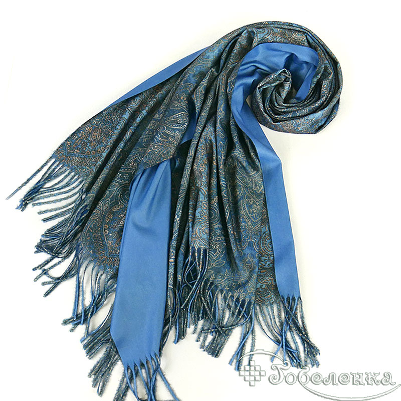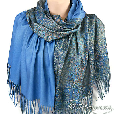 Теплый палантин Зимняя сказка сезона осень-зима двусторонний. Одна сторона - чистый голубой, как небо над замёрзшим озером, переливающийся оттенками серебра и ледяного блеска. Вторая - вышитый узор в стиле восточного орнамента, где каждая деталь - как капля воды на льду, отражающая звёзды. Это сочетание - как два взаимодополняющих чувства: простота и роскошь, тишина и торжество.