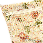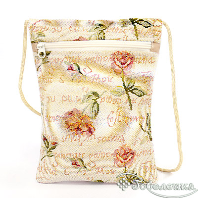 Сумочка украшена нежным изображением одиночной розы в полураспустившемся виде на светлом фоне с лёгкими тенями и винтажными элементами Основные оттенки - розовый бежевый кремовый и светло-серый что создаёт деликатное и женственное настроение Рисунок выполнен в стиле старинной гобеленовой вышивки подчёркивает утончённость и внимание к деталям