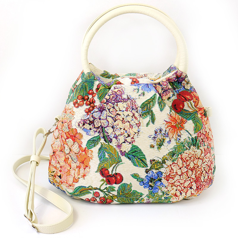Нежная и в то же врямя яркая сумка с букетами гортензий, смородиной и вишней - изобильный дивный сад на сумочке для тех кто любит вкусно и красиво!