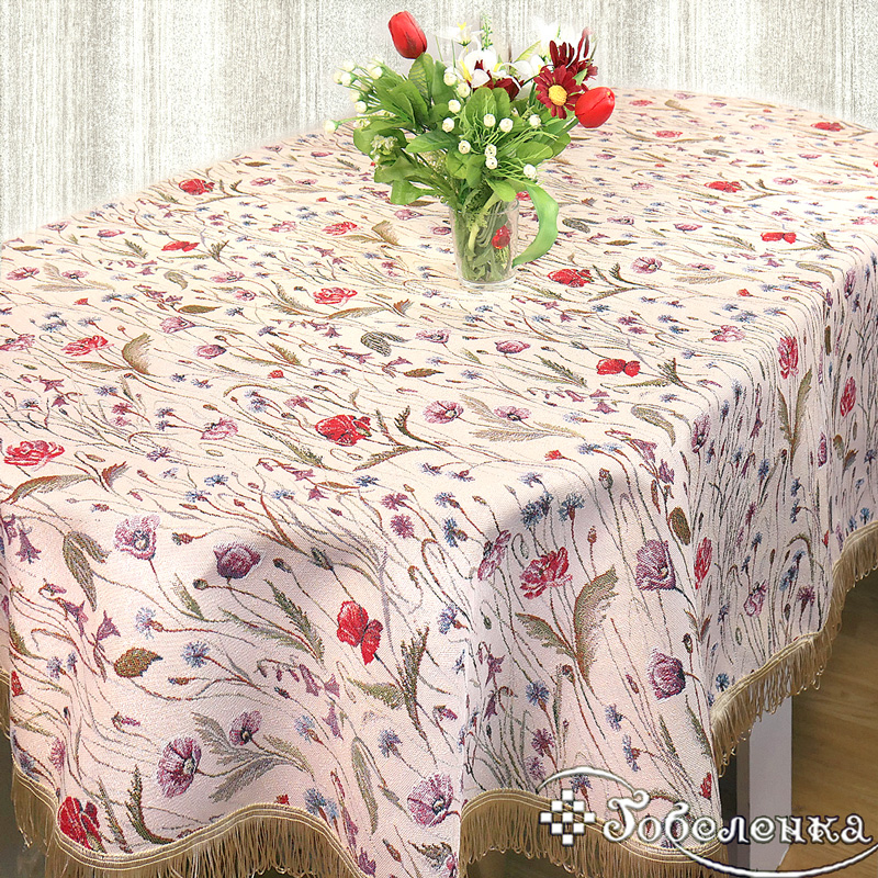 Основной мотив скатерти - это цветочный рисунок, который состоит из маков, васильков и колокольчиков. Этот рисунок создает атмосферу летнего дня, наполненного свежестью и ароматами полевых цветов. Благодаря такому декору, скатерть Полевые цветы станет отличным дополнением к интерьеру любого дома.