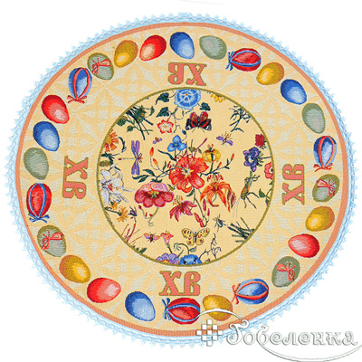 Салфетка декоративная Яркая Пасха, D-63 см (+-2) для украшения пасхального стола в светлый день.