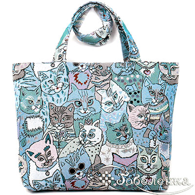 Гобеленовая сумка оформлена модным принтом из десятков обаятельных котиков в нежно-голубой, сиренево-розовой и серой палитре. Каждый котик уникален - улыбчивый, задумчивый, непоседливый! Такая сумка поднимает настроение, подчёркивает любовь к животным и добавляет яркий акцент к любому образу. Джинсовые оттенки универсальны: подходят к casual-стилю и оживляют даже строгий наряд.