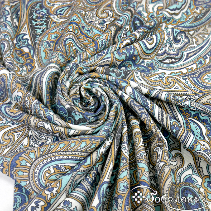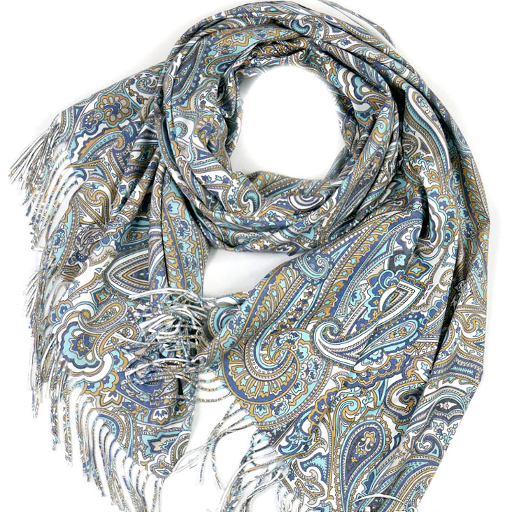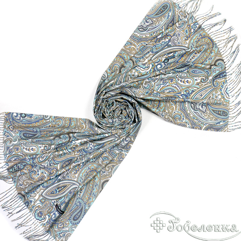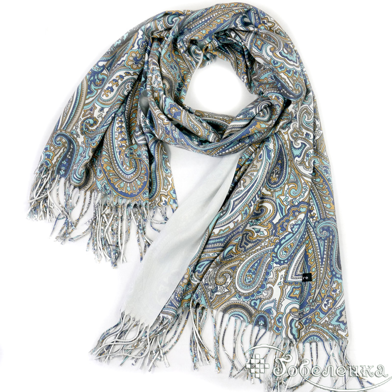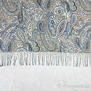 Представляем вам палантин с уникальным дизайном. С одной стороны у него орнамент в виде пейсли , а с другой стороны - он однотонный и имеет белый цвет.