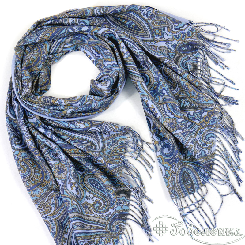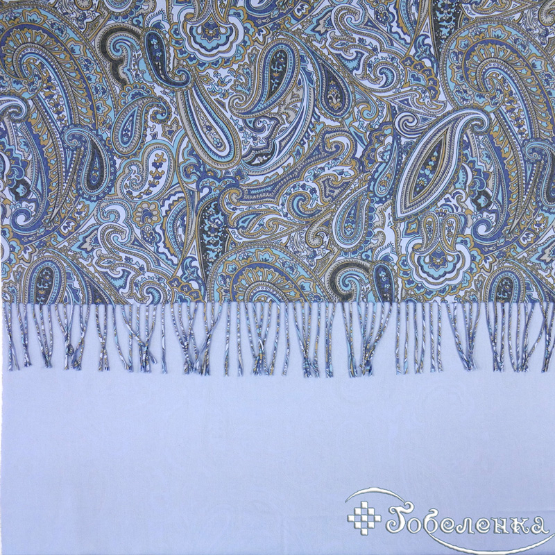 Представляем Вам палантин с уникальным дизайном. С одной стороны у него орнамент в виде пейсли , а с другой стороны - он однотонный и имеет свелый розовато-лиловый цвет.