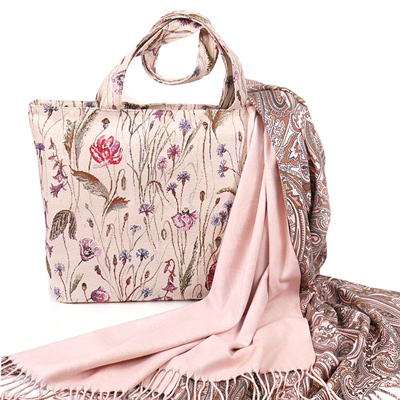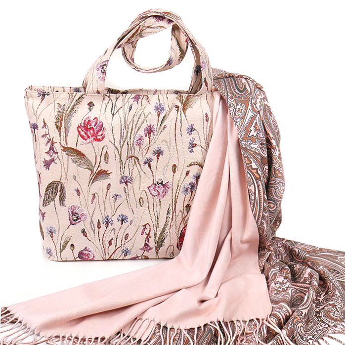 Гобеленовая сумка с длинными ручками на подкладке. Сумка застегивается на молнию, есть внутренний карман. Длина ручек 69 см.
