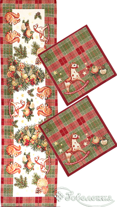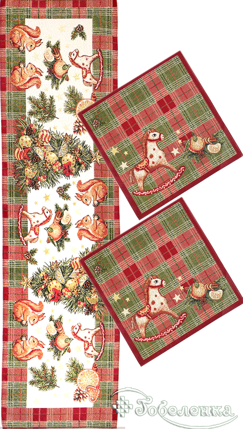 Набор из дорожки и 2-х салфеток с красочным новогодним рисунком.