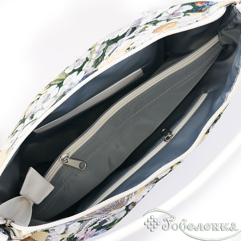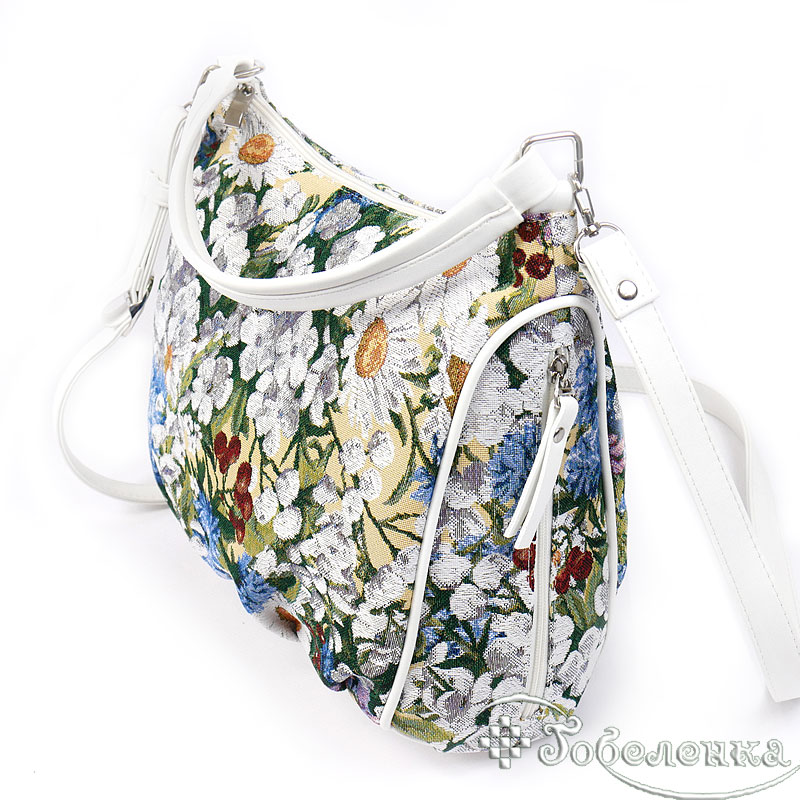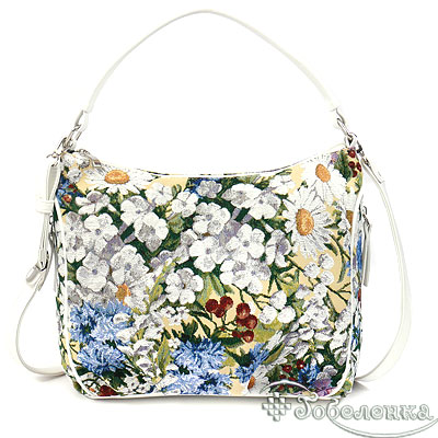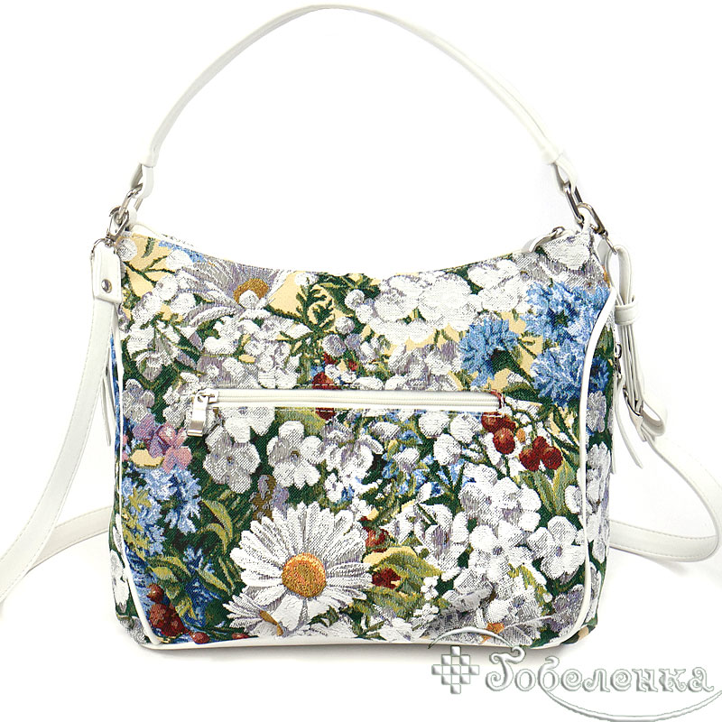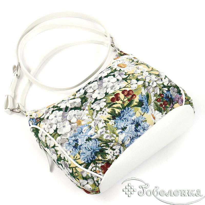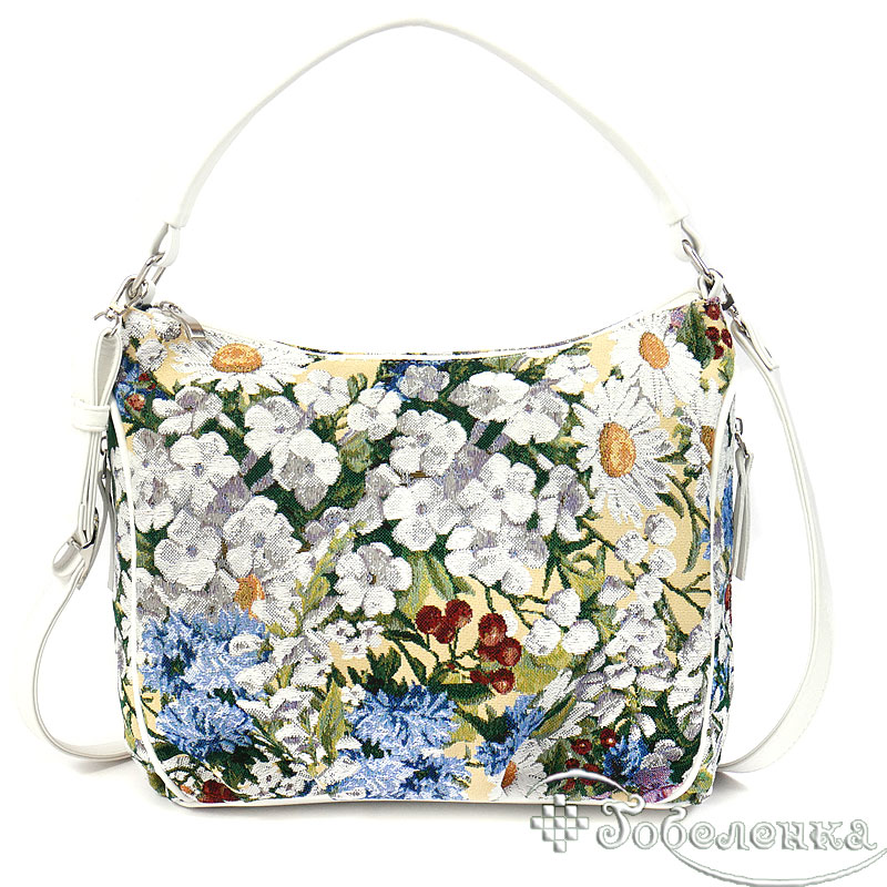 Дамская сумочка из гобелена небольшая и легкая из ткани Ромашки. Удобная длинна ручек можно носить как в руке, так и на плече.